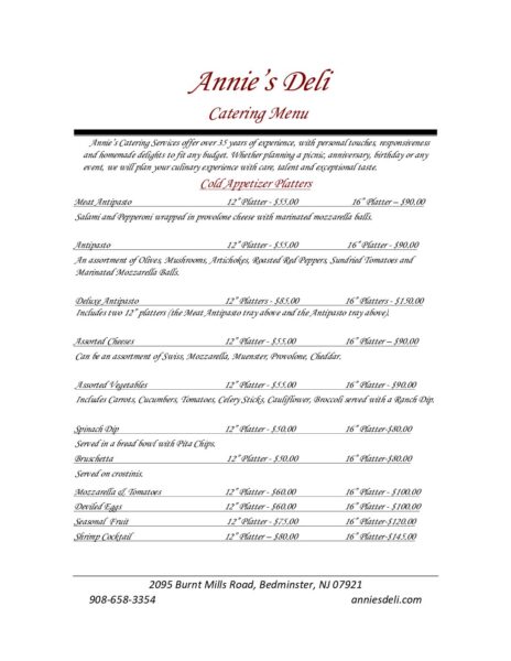 Annie’s Deli Catering, Breakfast & Sandwich Menu